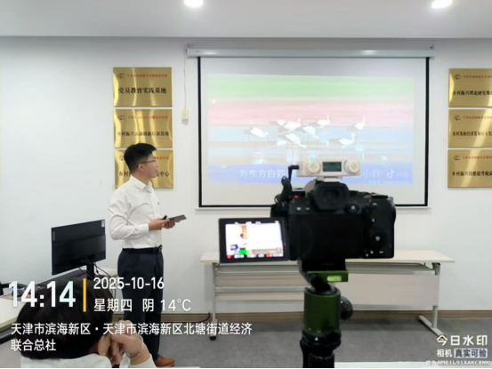 随后,北塘联合社王金清书记接过“思政课”的“授课棒”,从十五个维度为学子们展开北塘的“立体画卷”。她既讲述了北塘作为渔农重镇的历史沿革,提及闻名京津的北塘海鲜、充满趣味的民间传说,也介绍了“宁车沽三宝”的特色、现代农业的发展突破;既解读了北塘在京津冀协同发展中的定位,也详细说明北塘联合社的成立背景,以及与华谊兄弟、携程集团、天隆农业等30余家单位的合作成果。一个个鲜活的案例、一段段生动的历史,让“背包里的思政课” 充满乡土温度,也让学子们更深刻地理解“乡村振兴既要守好文化根脉,也要走好创新之路”。